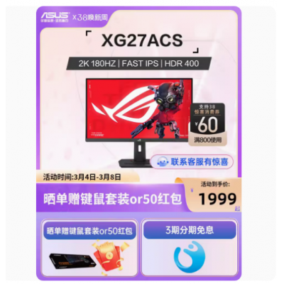 ROG XG27ACS绝杀27青春版 显示器电竞180Hz 27英寸2k显示屏幕电脑